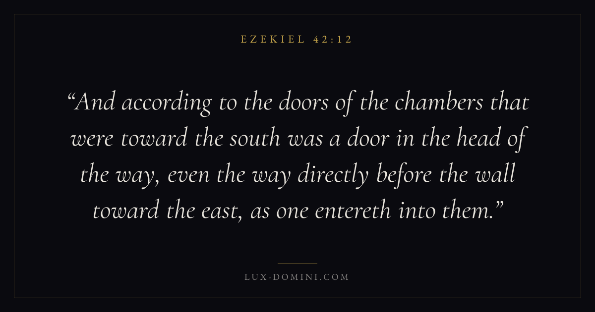 And according to the doors of the chambers that were toward the south was a door in the head of the way, even the way directly before the wall toward the east, as one entereth into them.