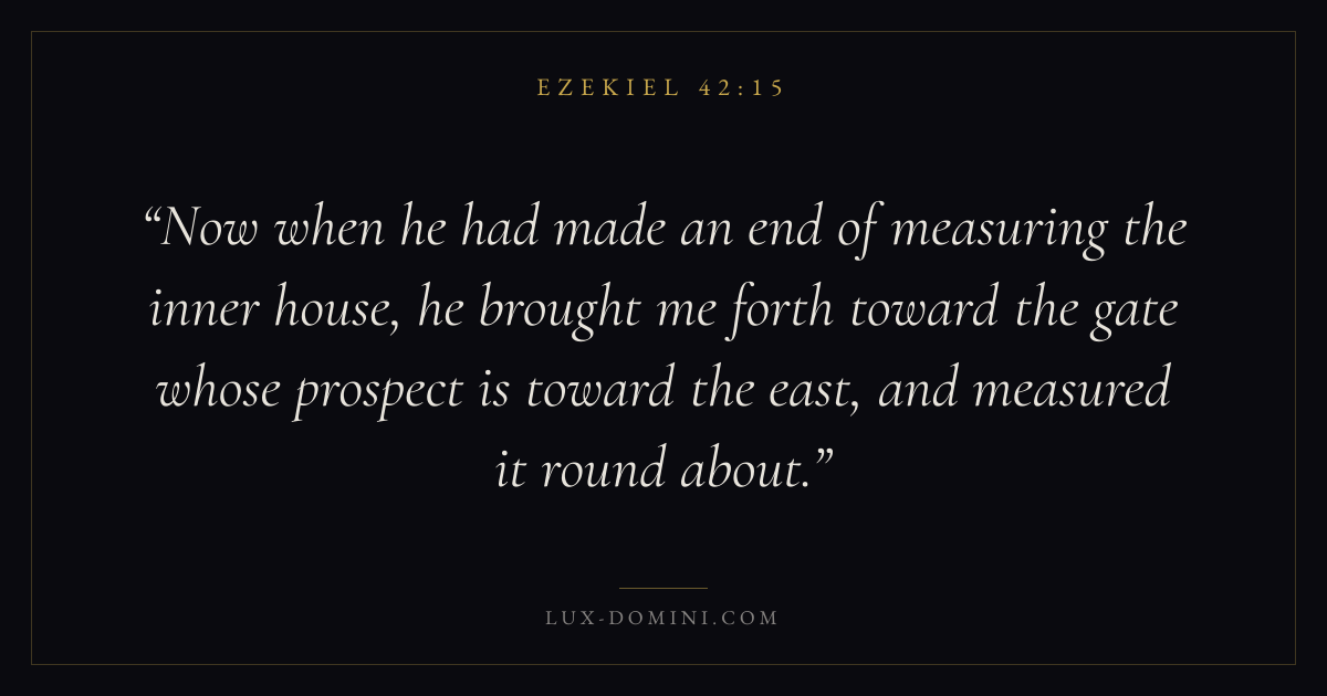 Now when he had made an end of measuring the inner house, he brought me forth toward the gate whose prospect is toward the east, and measured it round about.