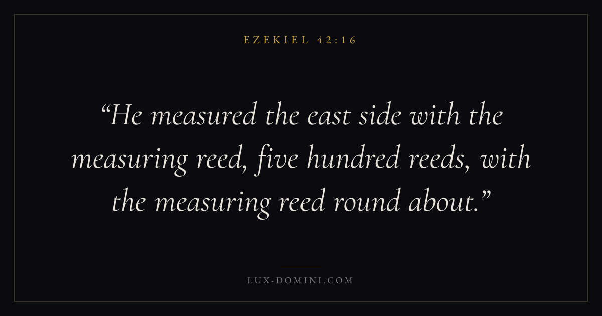He measured the east side with the measuring reed, five hundred reeds, with the measuring reed round about.