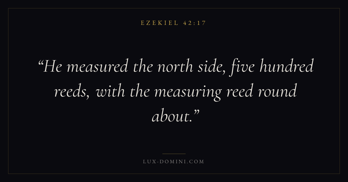 He measured the north side, five hundred reeds, with the measuring reed round about.