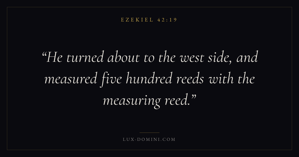He turned about to the west side, and measured five hundred reeds with the measuring reed.
