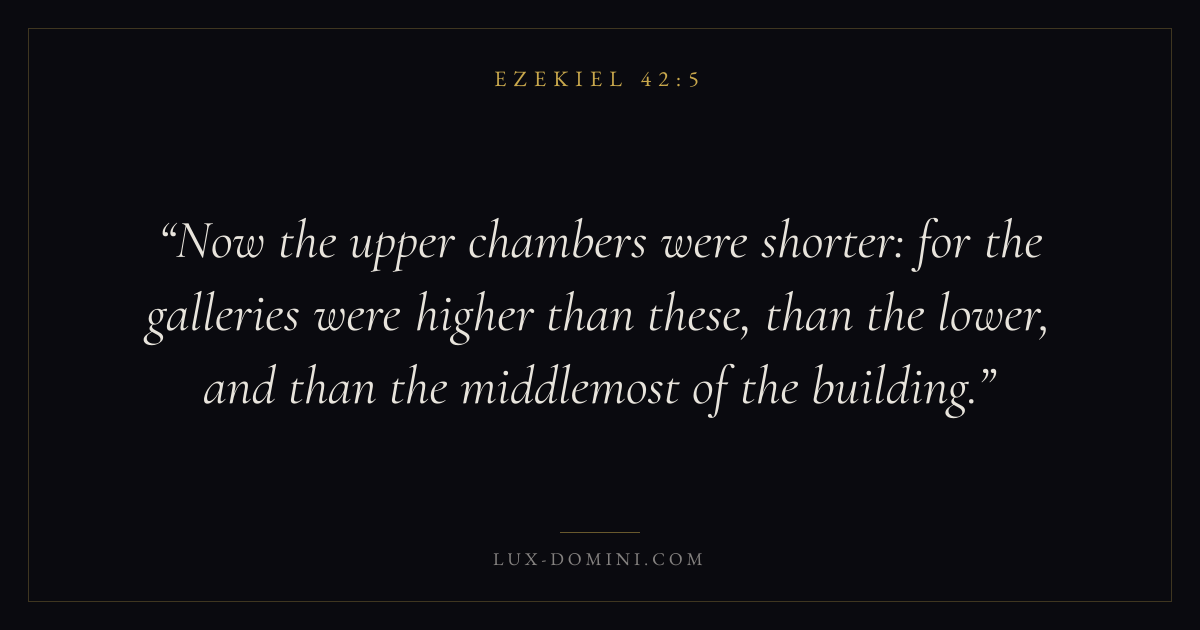 Now the upper chambers were shorter: for the galleries were higher than these, than the lower, and than the middlemost of the building.