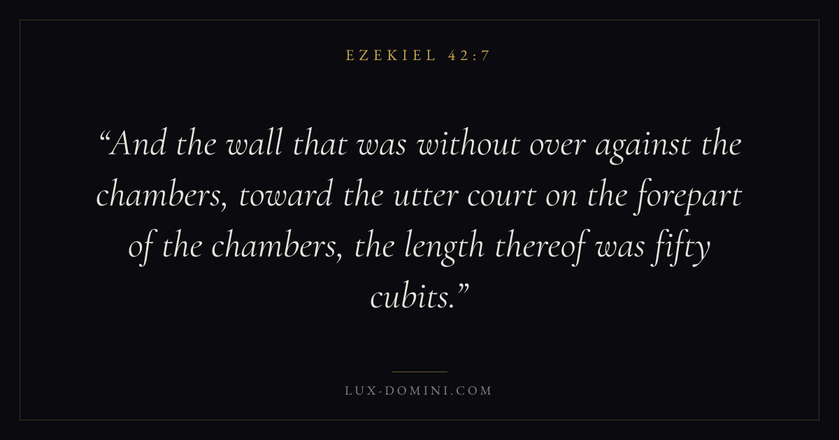 And the wall that was without over against the chambers, toward the utter court on the forepart of the chambers, the length thereof was fifty cubits.