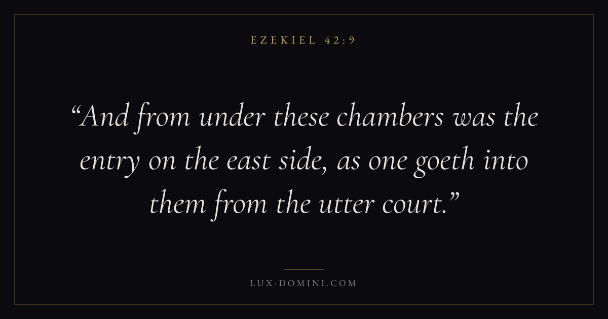 And from under these chambers was the entry on the east side, as one goeth into them from the utter court.