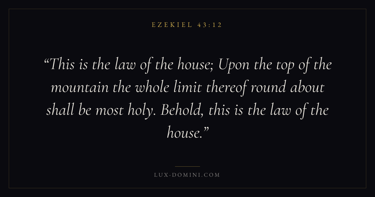 This is the law of the house; Upon the top of the mountain the whole limit thereof round about shall be most holy. Behold, this is the law of the house.