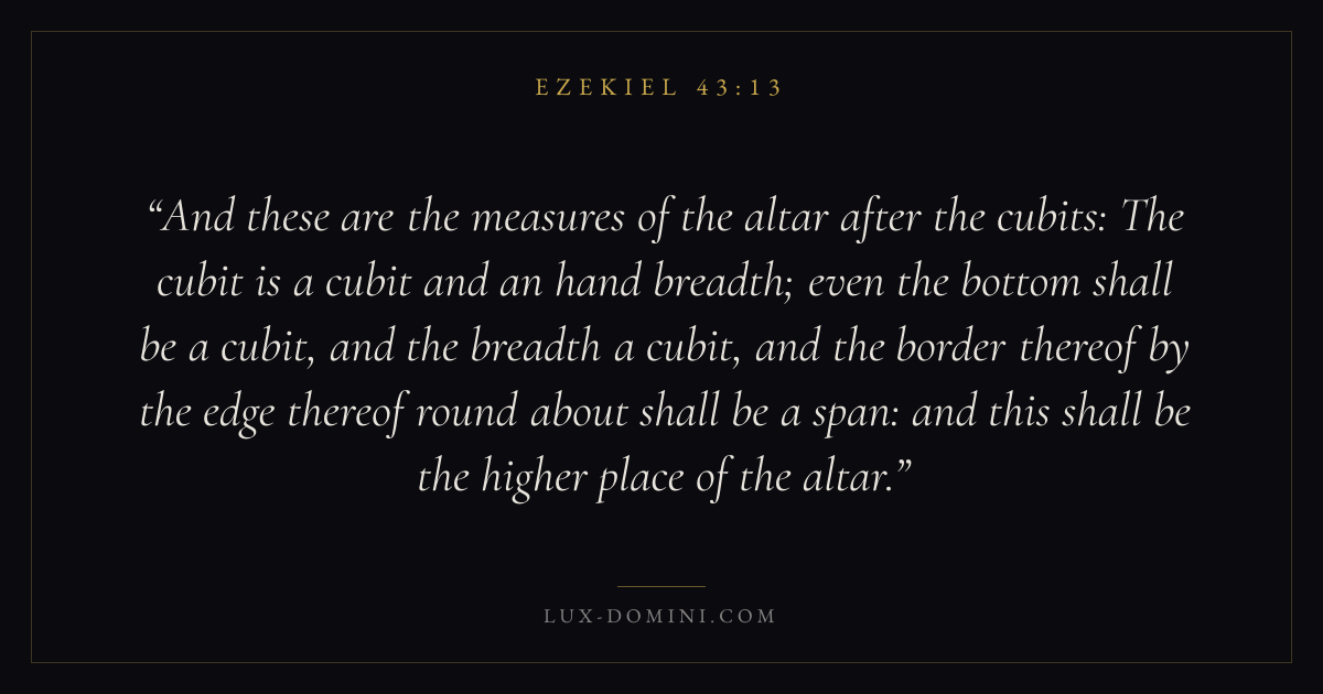 And these are the measures of the altar after the cubits: The cubit is a cubit and an hand breadth; even the bottom shall be a cubit, and the breadth a cubit, and the border thereof by the edge thereof round about shall be a span: and this shall be the higher place of the altar.