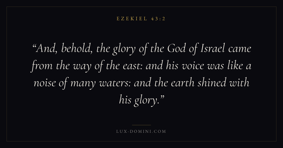 And, behold, the glory of the God of Israel came from the way of the east: and his voice was like a noise of many waters: and the earth shined with his glory.