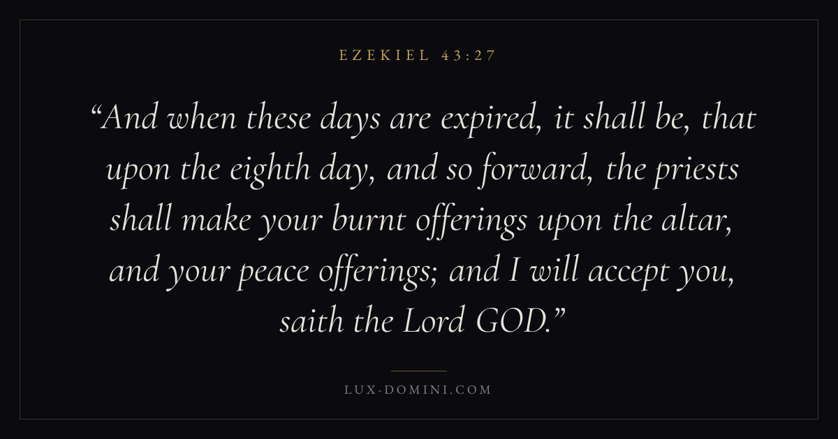 And when these days are expired, it shall be, that upon the eighth day, and so forward, the priests shall make your burnt offerings upon the altar, and your peace offerings; and I will accept you, saith the Lord GOD.