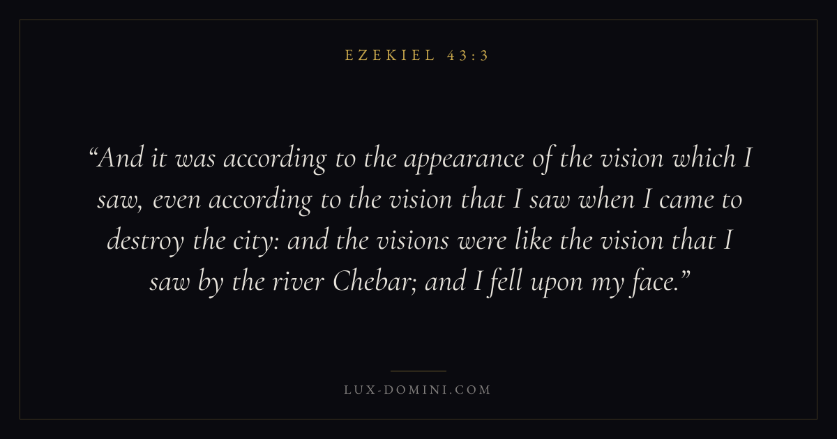 And it was according to the appearance of the vision which I saw, even according to the vision that I saw when I came to destroy the city: and the visions were like the vision that I saw by the river Chebar; and I fell upon my face.