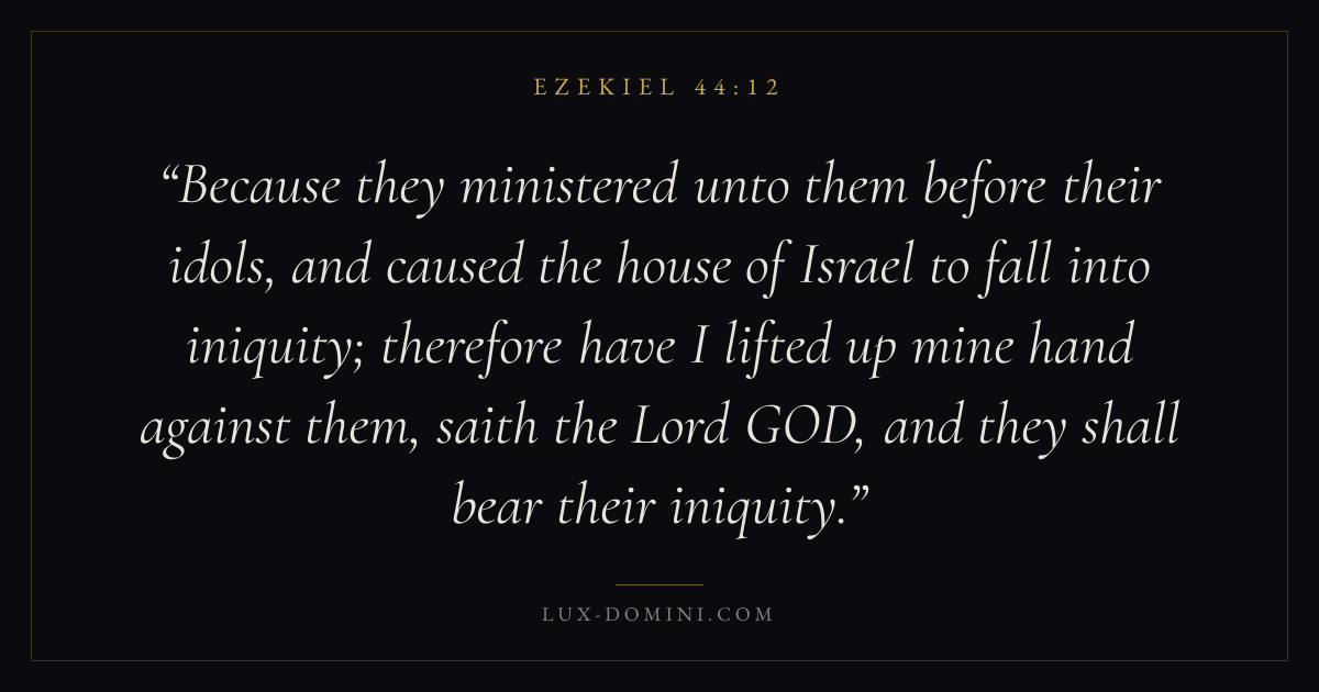Because they ministered unto them before their idols, and caused the house of Israel to fall into iniquity; therefore have I lifted up mine hand against them, saith the Lord GOD, and they shall bear their iniquity.