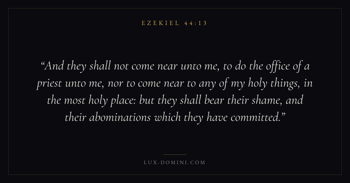 And they shall not come near unto me, to do the office of a priest unto me, nor to come near to any of my holy things, in the most holy place: but they shall bear their shame, and their abominations which they have committed.