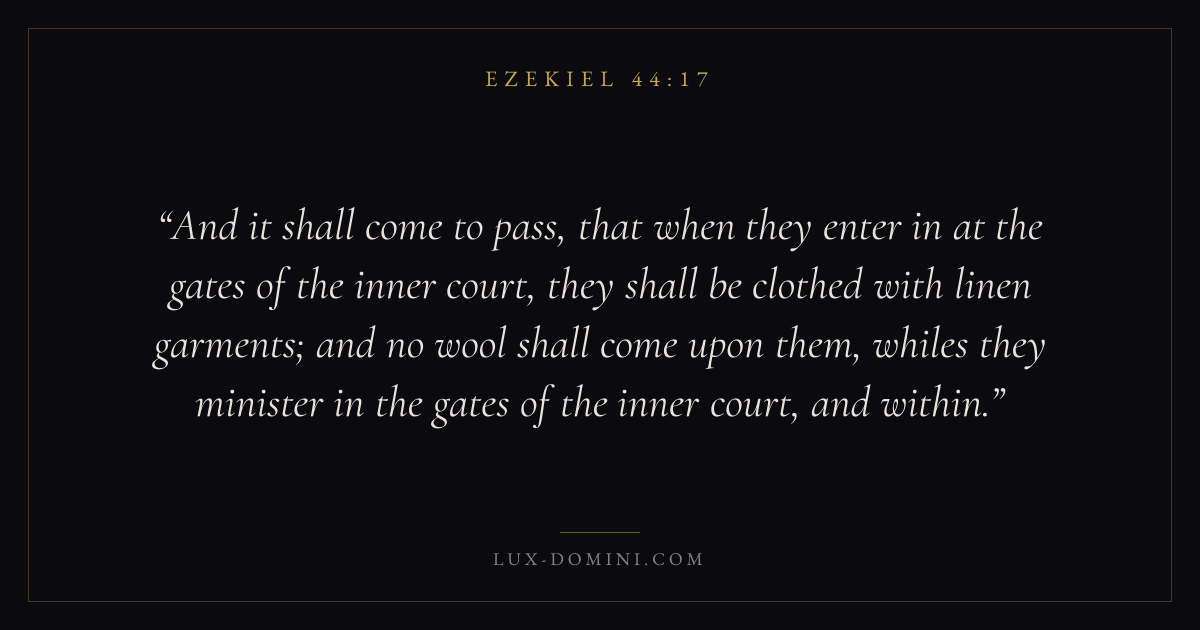 And it shall come to pass, that when they enter in at the gates of the inner court, they shall be clothed with linen garments; and no wool shall come upon them, whiles they minister in the gates of the inner court, and within.