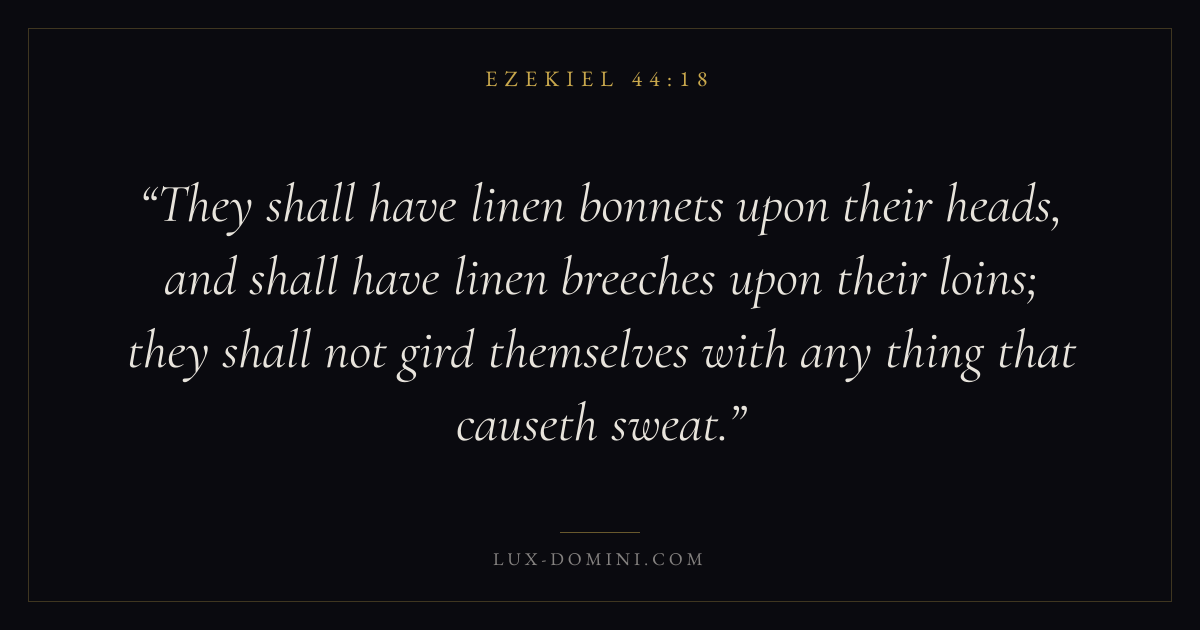 They shall have linen bonnets upon their heads, and shall have linen breeches upon their loins; they shall not gird themselves with any thing that causeth sweat.