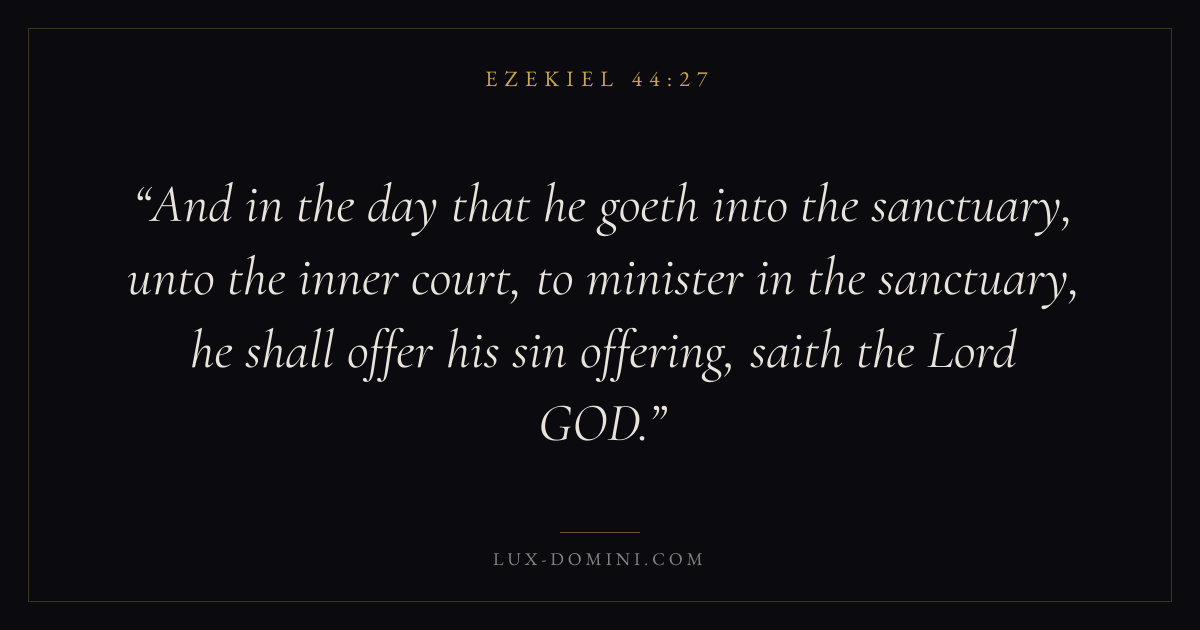 And in the day that he goeth into the sanctuary, unto the inner court, to minister in the sanctuary, he shall offer his sin offering, saith the Lord GOD.