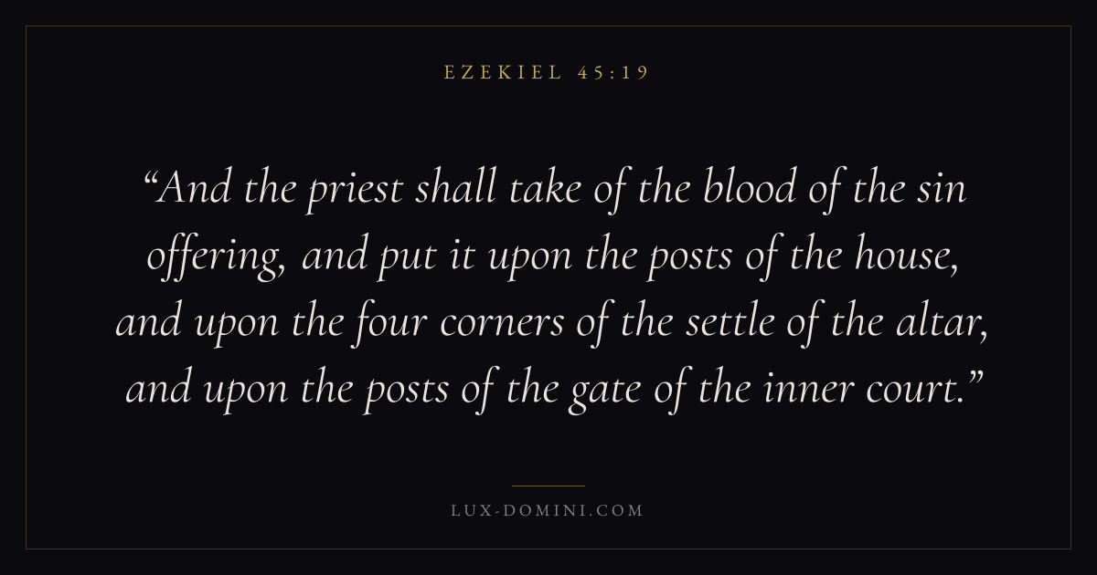 And the priest shall take of the blood of the sin offering, and put it upon the posts of the house, and upon the four corners of the settle of the altar, and upon the posts of the gate of the inner court.