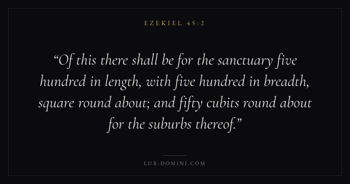 Of this there shall be for the sanctuary five hundred in length, with five hundred in breadth, square round about; and fifty cubits round about for the suburbs thereof.