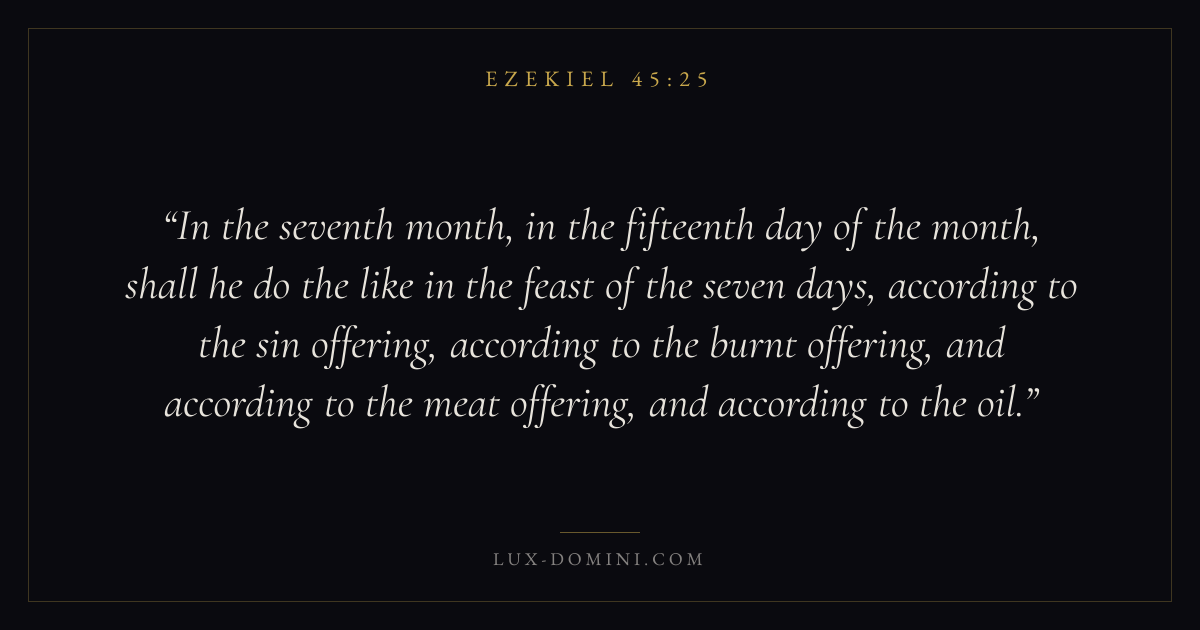 In the seventh month, in the fifteenth day of the month, shall he do the like in the feast of the seven days, according to the sin offering, according to the burnt offering, and according to the meat offering, and according to the oil.