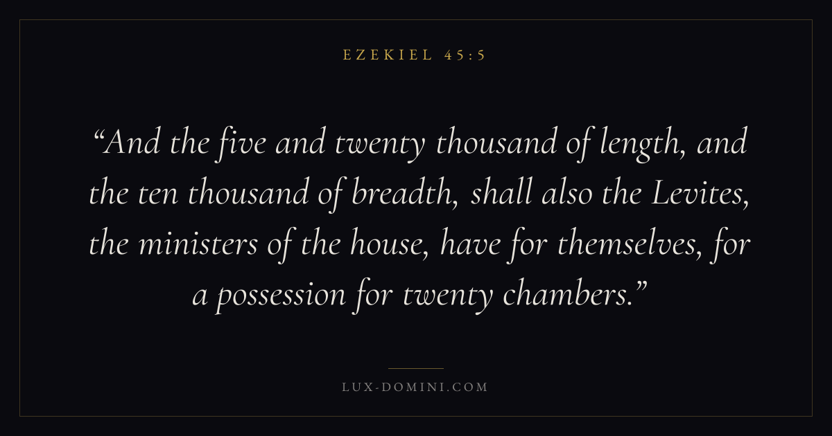 And the five and twenty thousand of length, and the ten thousand of breadth, shall also the Levites, the ministers of the house, have for themselves, for a possession for twenty chambers.