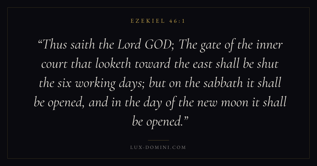 Thus saith the Lord GOD; The gate of the inner court that looketh toward the east shall be shut the six working days; but on the sabbath it shall be opened, and in the day of the new moon it shall be opened.