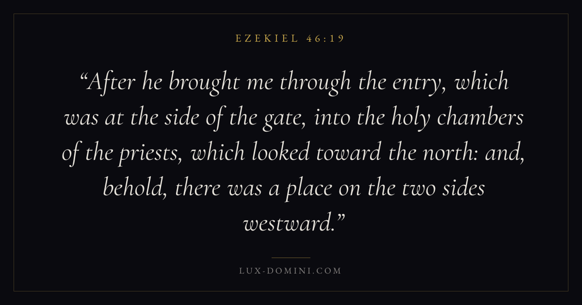 After he brought me through the entry, which was at the side of the gate, into the holy chambers of the priests, which looked toward the north: and, behold, there was a place on the two sides westward.