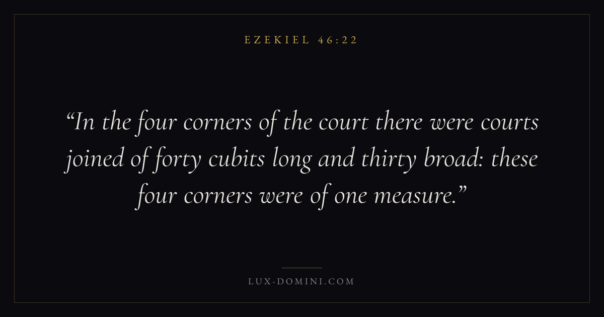 In the four corners of the court there were courts joined of forty cubits long and thirty broad: these four corners were of one measure.