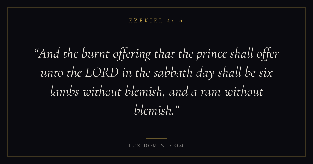 And the burnt offering that the prince shall offer unto the LORD in the sabbath day shall be six lambs without blemish, and a ram without blemish.