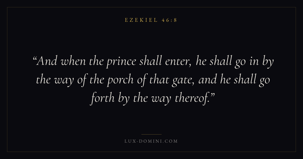 And when the prince shall enter, he shall go in by the way of the porch of that gate, and he shall go forth by the way thereof.