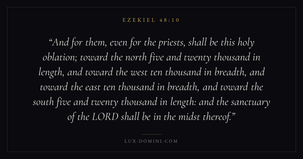 And for them, even for the priests, shall be this holy oblation; toward the north five and twenty thousand in length, and toward the west ten thousand in breadth, and toward the east ten thousand in breadth, and toward the south five and twenty thousand in length: and the sanctuary of the LORD shall be in the midst thereof.