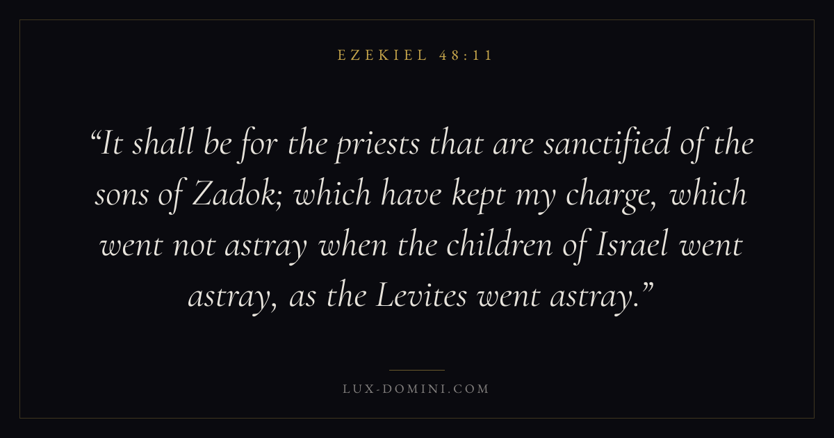 It shall be for the priests that are sanctified of the sons of Zadok; which have kept my charge, which went not astray when the children of Israel went astray, as the Levites went astray.