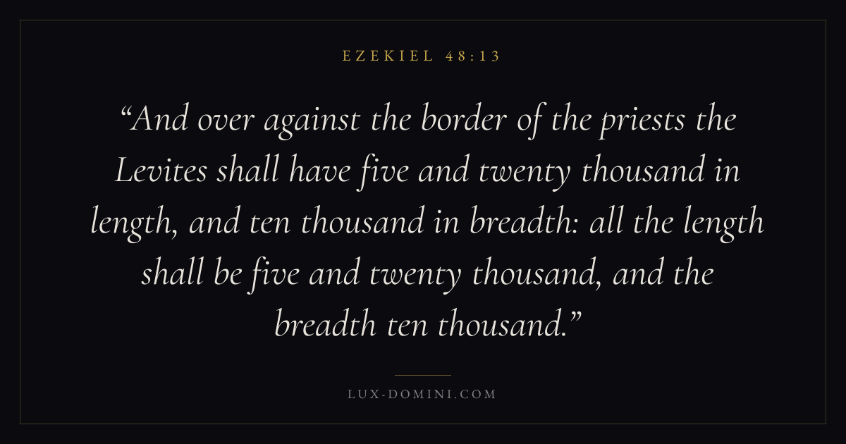 And over against the border of the priests the Levites shall have five and twenty thousand in length, and ten thousand in breadth: all the length shall be five and twenty thousand, and the breadth ten thousand.