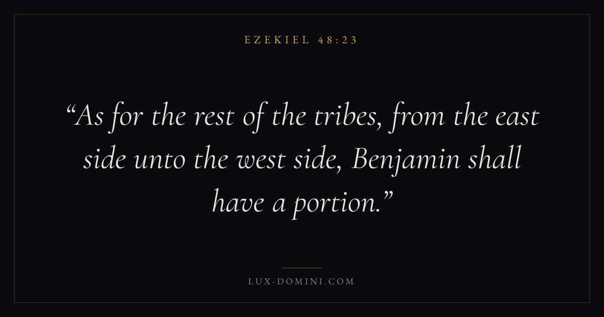 As for the rest of the tribes, from the east side unto the west side, Benjamin shall have a portion.