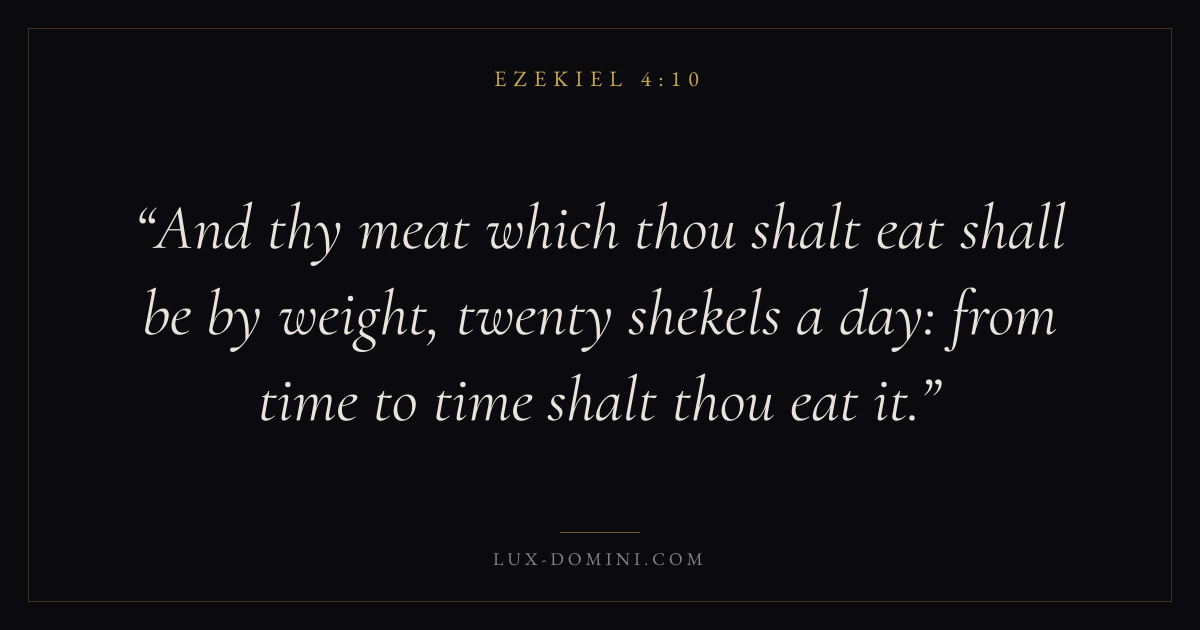 And thy meat which thou shalt eat shall be by weight, twenty shekels a day: from time to time shalt thou eat it.