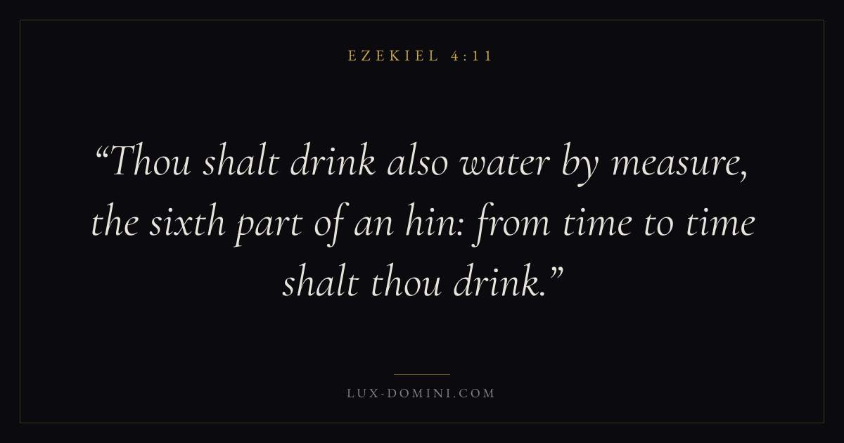 Thou shalt drink also water by measure, the sixth part of an hin: from time to time shalt thou drink.