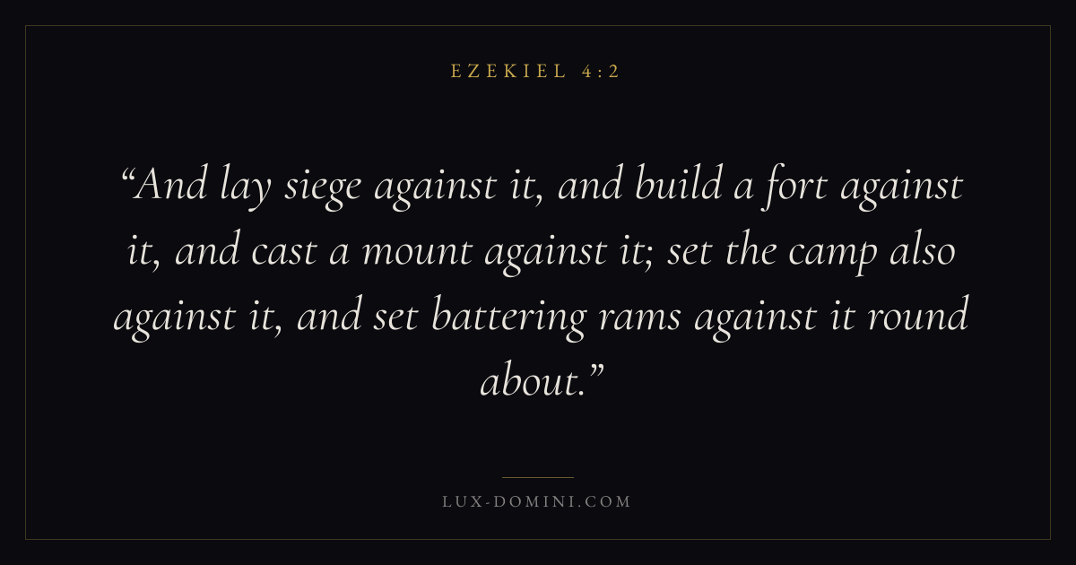 And lay siege against it, and build a fort against it, and cast a mount against it; set the camp also against it, and set battering rams against it round about.
