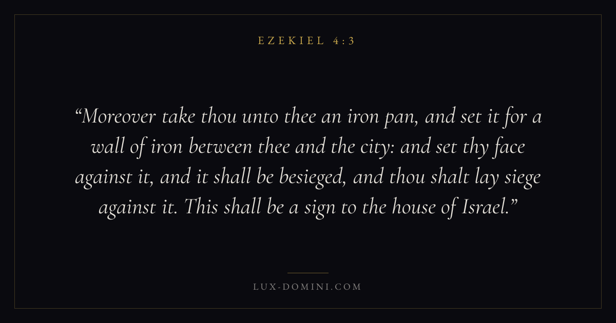 Moreover take thou unto thee an iron pan, and set it for a wall of iron between thee and the city: and set thy face against it, and it shall be besieged, and thou shalt lay siege against it. This shall be a sign to the house of Israel.
