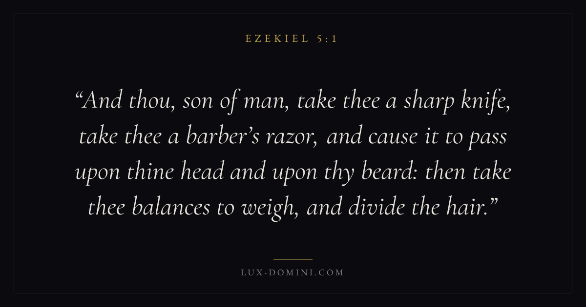 And thou, son of man, take thee a sharp knife, take thee a barber’s razor, and cause it to pass upon thine head and upon thy beard: then take thee balances to weigh, and divide the hair.