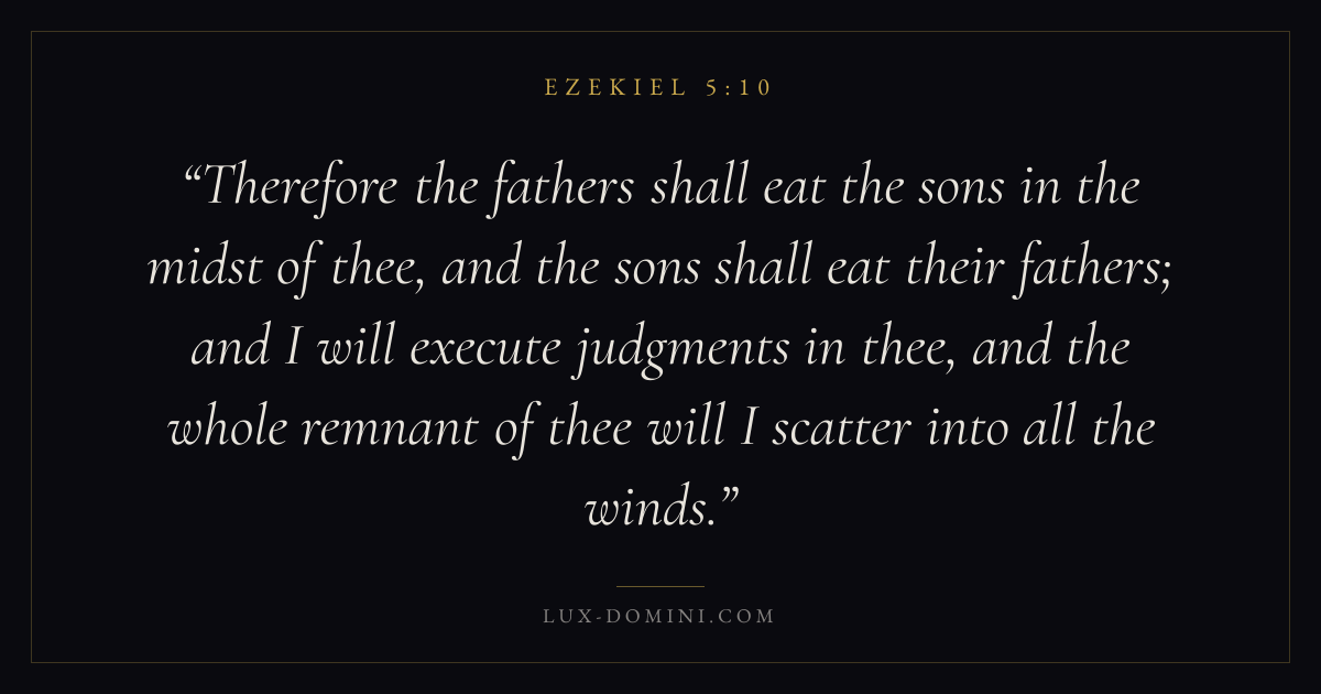 Therefore the fathers shall eat the sons in the midst of thee, and the sons shall eat their fathers; and I will execute judgments in thee, and the whole remnant of thee will I scatter into all the winds.