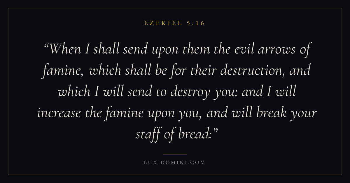 When I shall send upon them the evil arrows of famine, which shall be for their destruction, and which I will send to destroy you: and I will increase the famine upon you, and will break your staff of bread: