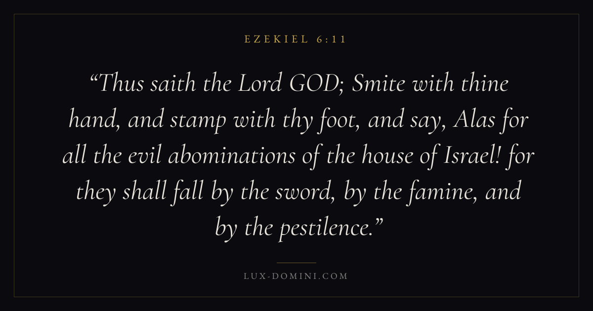 Thus saith the Lord GOD; Smite with thine hand, and stamp with thy foot, and say, Alas for all the evil abominations of the house of Israel! for they shall fall by the sword, by the famine, and by the pestilence.