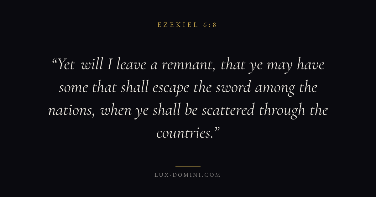 Yet will I leave a remnant, that ye may have some that shall escape the sword among the nations, when ye shall be scattered through the countries.