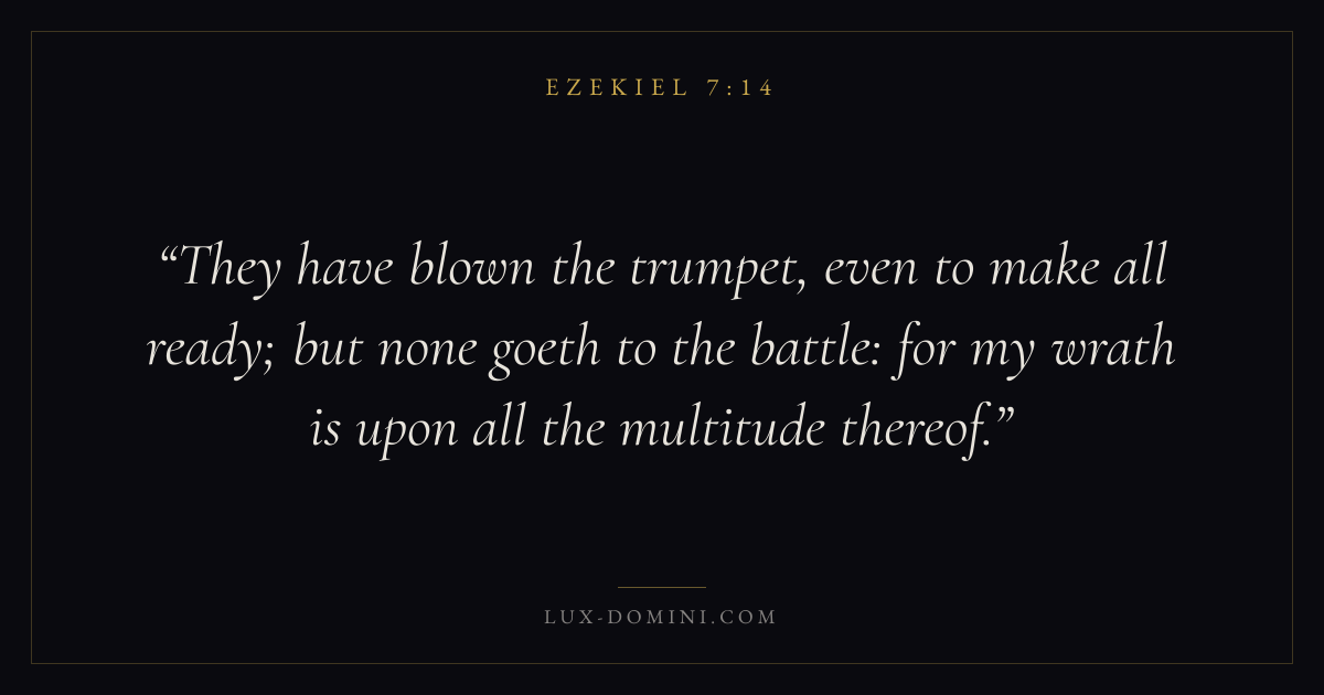 They have blown the trumpet, even to make all ready; but none goeth to the battle: for my wrath is upon all the multitude thereof.