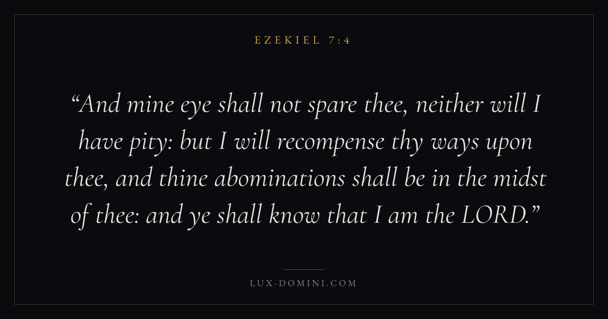 And mine eye shall not spare thee, neither will I have pity: but I will recompense thy ways upon thee, and thine abominations shall be in the midst of thee: and ye shall know that I am the LORD.