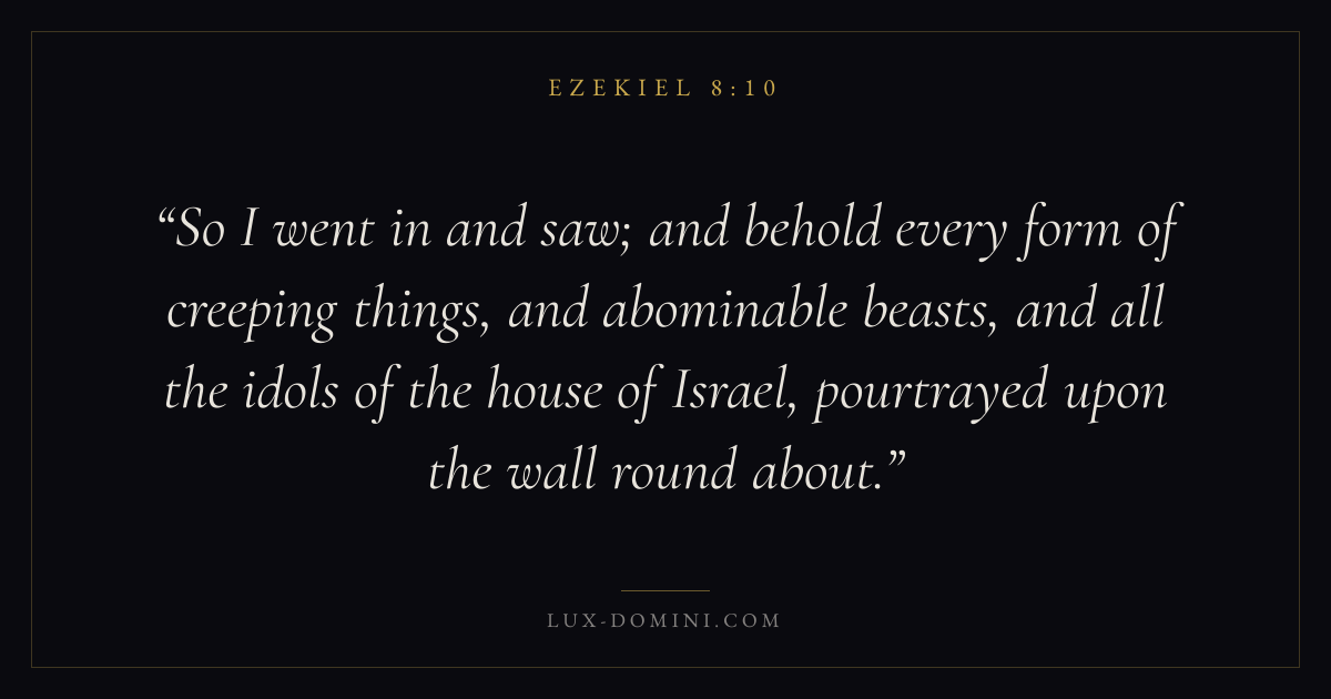 So I went in and saw; and behold every form of creeping things, and abominable beasts, and all the idols of the house of Israel, pourtrayed upon the wall round about.