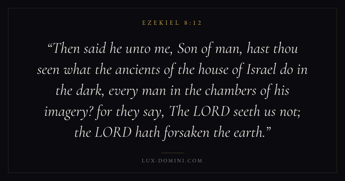 Then said he unto me, Son of man, hast thou seen what the ancients of the house of Israel do in the dark, every man in the chambers of his imagery? for they say, The LORD seeth us not; the LORD hath forsaken the earth.