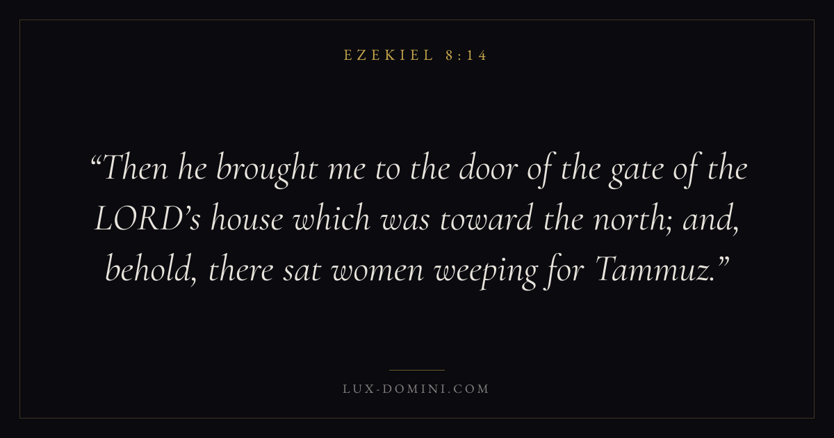 Then he brought me to the door of the gate of the LORD’s house which was toward the north; and, behold, there sat women weeping for Tammuz.