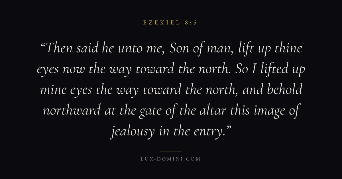 Then said he unto me, Son of man, lift up thine eyes now the way toward the north. So I lifted up mine eyes the way toward the north, and behold northward at the gate of the altar this image of jealousy in the entry.