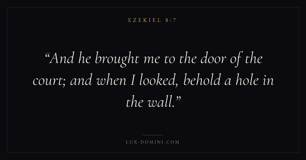 And he brought me to the door of the court; and when I looked, behold a hole in the wall.