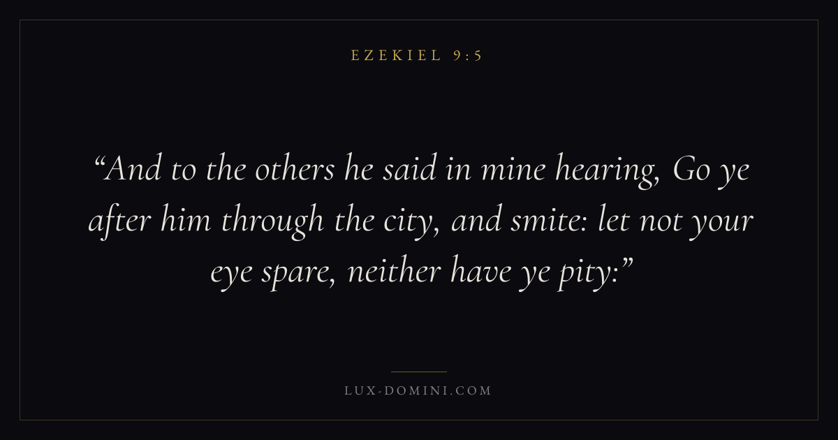 And to the others he said in mine hearing, Go ye after him through the city, and smite: let not your eye spare, neither have ye pity: