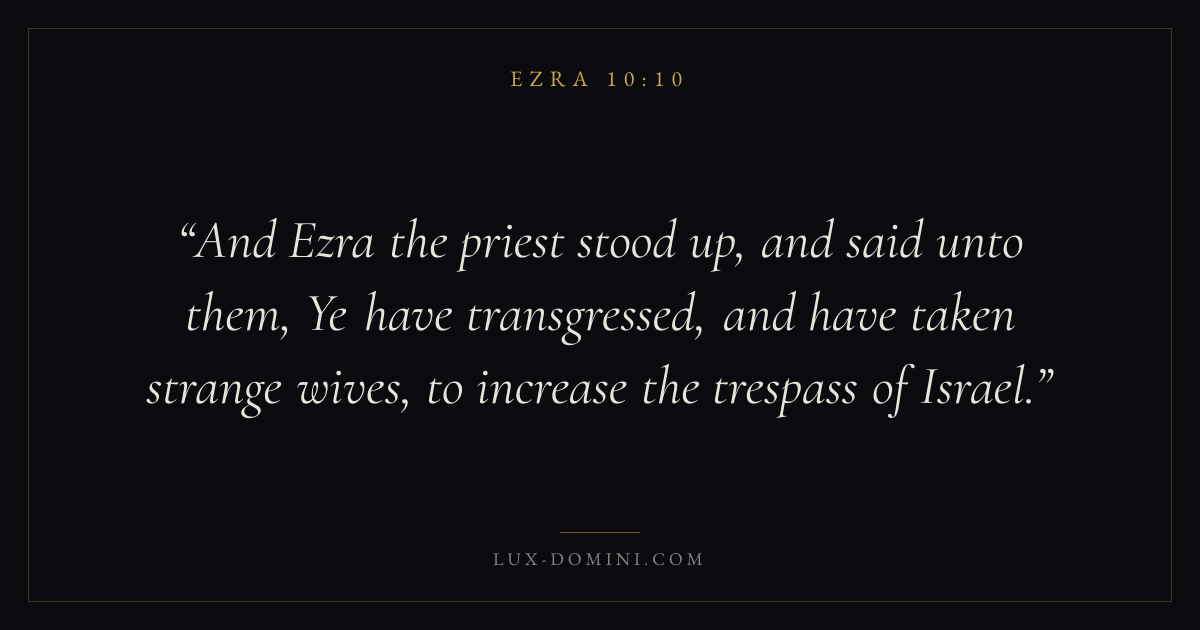 And Ezra the priest stood up, and said unto them, Ye have transgressed, and have taken strange wives, to increase the trespass of Israel.
