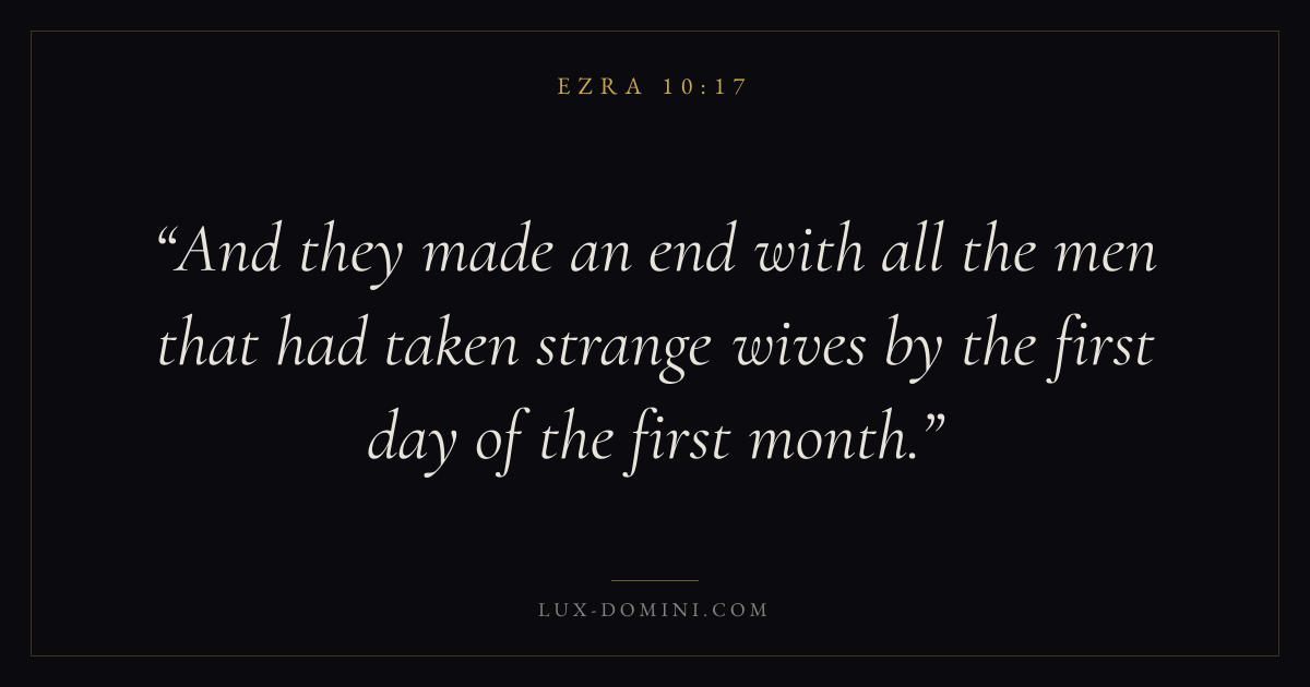 And they made an end with all the men that had taken strange wives by the first day of the first month.